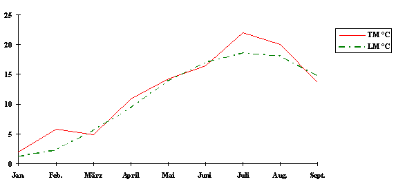 von 9,8°C. Die Niederschlagsmenge beträgt im langjährigen Mittel 540mm pro