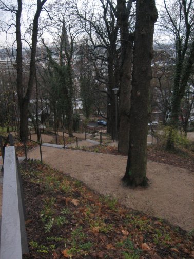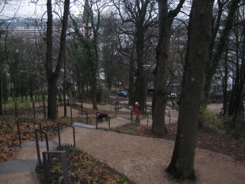 Siegburg. Der alte Treppenaufstieg von der Stadt zum Kloster war über die