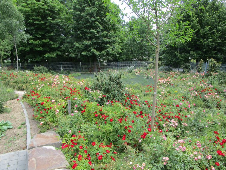 | Fortführung der blütenbetonten Rahmenpflanzung mit Versickerungsrigole für die gesamte Schulanlage (Gebäude mit Schulhof). | ||