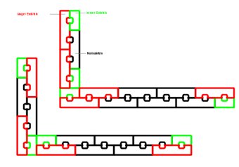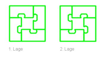 Steine, wie oben oder im folgenden gezeichnet, zu einer Lage zusammengesetzt