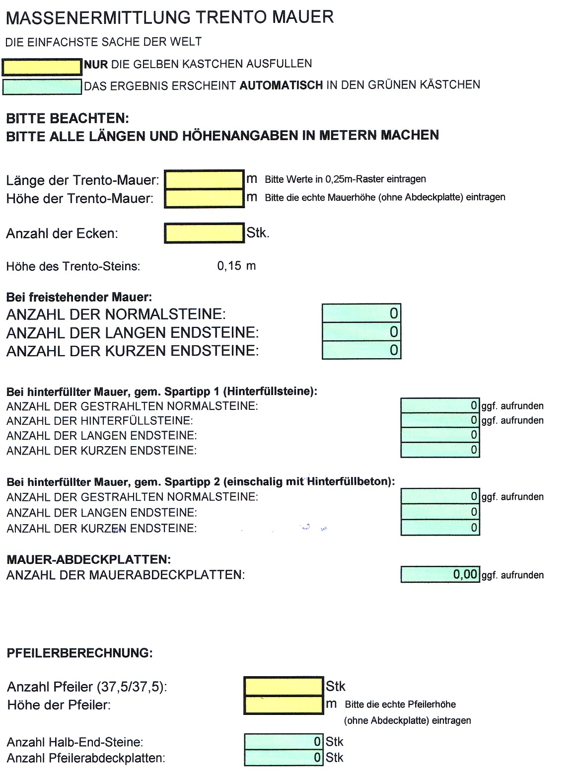 ermitteln. Der Anwender muss lediglich 5 Ziffern in die gelb hinterlegten