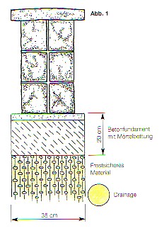 Auf das 20cm dicke und 35cm breite, frostsichere Betonfundament werden die