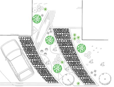 Fußweg und Garagenzufahrt können in unregelmäßigen